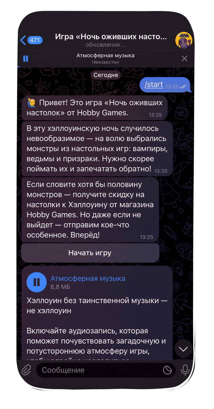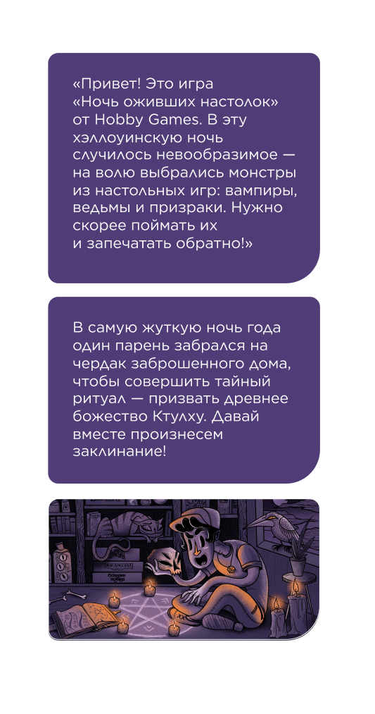 Вместе с Hobby World сделали первый стикер-квест в Telegram-боте, приуроченный к Хэллоуину.
